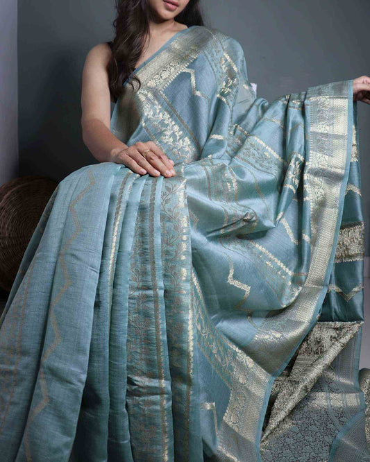Pastel Blue Pure Chanderi Silk Banarasi Saree