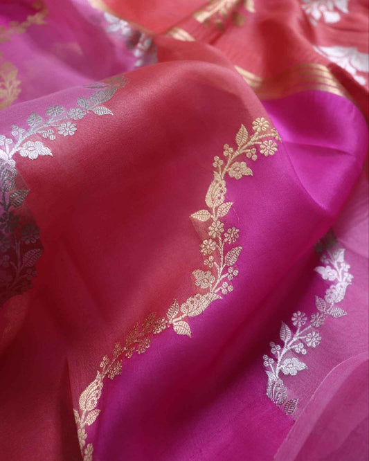 Rani Pink Pure Handloom Organza Silk Banarasi Saree