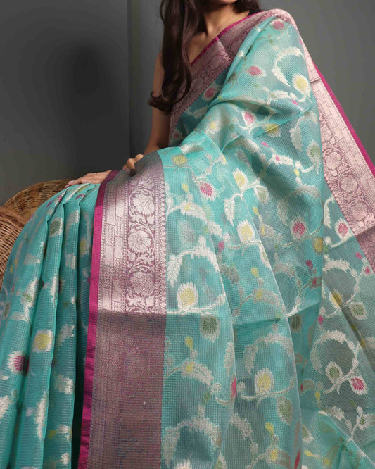 Sea Green Kota Silk Banarasi Saree