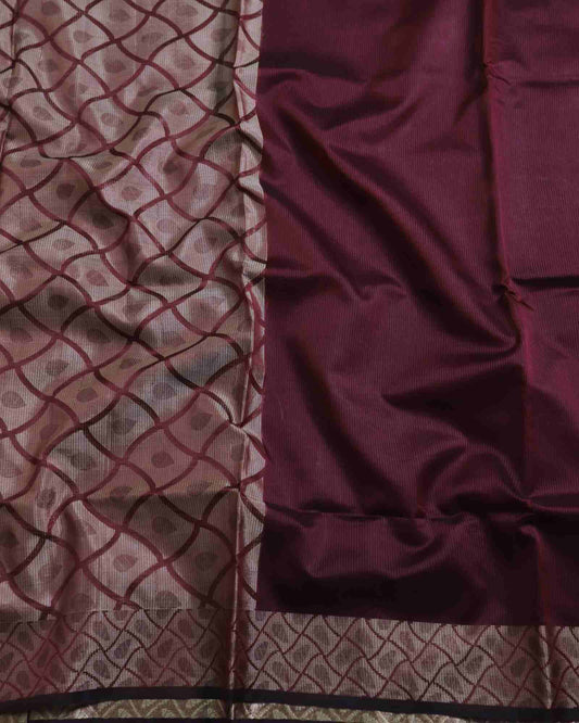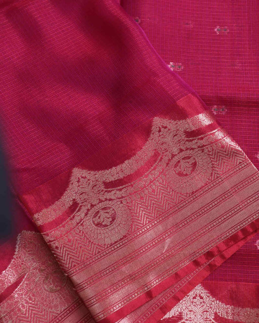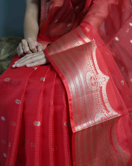 Cherry Red Kota Silk Banarasi Saree