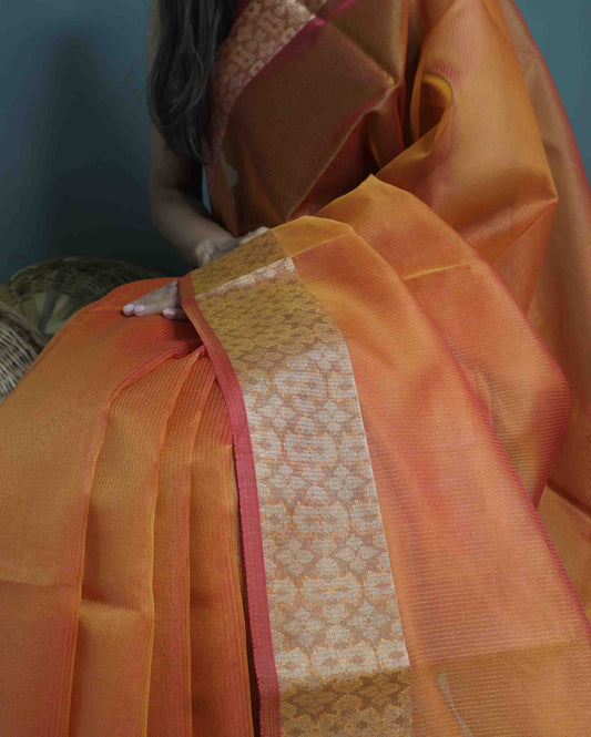 Sold outRust Orange Kota Silk Saree