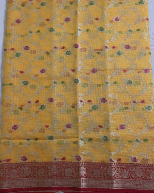 Yellow Kota Silk Banarasi Saree